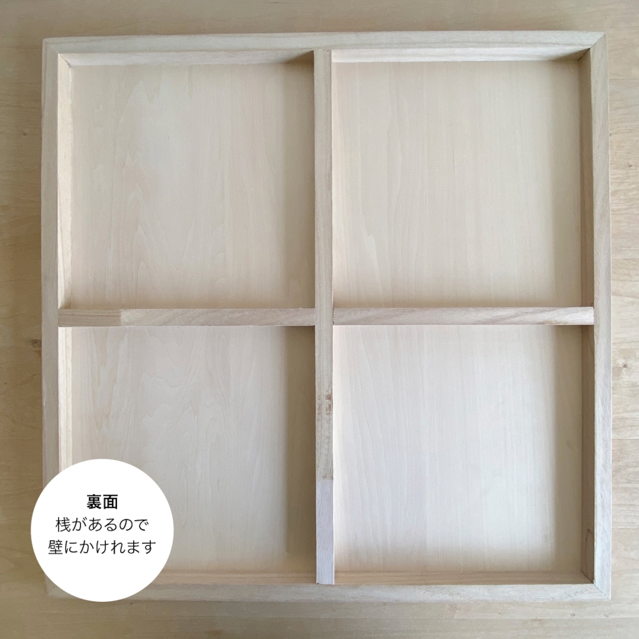 桟があるので直ぐに飾れ、壁に立てかけて置くこともできます。
